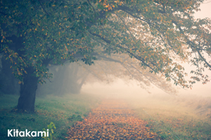 みちのく三大桜名所のひとつ、北上展勝地にて撮影。桜はもちろんですが紅葉も綺麗です。この日は霧深くとても幻想的でした。